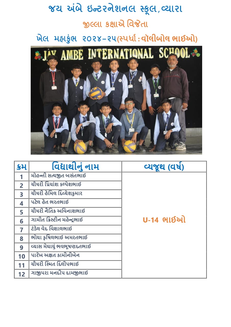 તાપી જિલ્લા ખેલમહાકુંભમાં જય અંબે ઇન્ટરનેશનલ સ્કૂલ વ્યારાની ટીમો વિજેતા