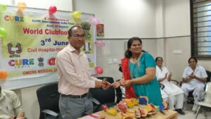 વર્લ્ડ ક્લબફૂટ ડે નિમિત્તે, ગુજરાતના હિંમતનગર સ્થિત GMERS મેડિકલ કોલેજ ખાતે એક ખાસ કાર્યક્રમનું આયોજન કરવામાં આવ્યું હતું. આ કાર્યક્રમમાં CDMO સર, RMO સર, ઓર્થોપેડિક ડોકટરો અને ઓર્થોપેડિક વિભાગના સભ્યોની હાજરી જોવા મળી હતી.