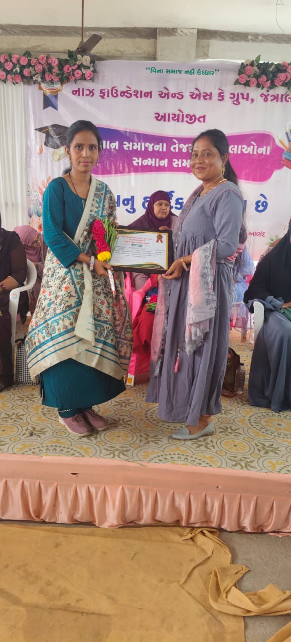 નાઝ ફાઉન્ડેશન અને એસ કે ગૃપ જંત્રાલ દ્વારા અનેકવિધ સામાજિક પ્રવૃત્તિઓ અને કાર્યક્રમો સમયાંતરે કરવામાં આવી રહ્યા છે. જેને અનુલક્ષીને આ સંસ્થા એ દિવાન – ફકીર સમાજ ની મહિલાઓ કે જે સામાજિક , શૈક્ષણિક,રાજકીય અને સરકારી ક્ષેત્રે પોતાનું અમૂલ્ય યોગદાન આપી રહી છે તેઓનું સામાજિક મંચ પર સન્માન અને અભિવાદન કરવાનો કાર્યક્રમ નાઝ ફાઉન્ડેશન એન્ડ એસ કે ગૃપ જંત્રાલ દ્વારા આણંદ મુકામે યોજવામાં આવ્યો. દિવાન ફકીર સમાજ ના મોભીઓ અને ચરોતર પંથકના વટવૃક્ષ સમા અગ્રણીઓ ની ઉપસ્થિતિ માં સમાજ ની ઉચ્ચ શિક્ષિત મહિલાઓ જેમકે ડોક્ટર, એડવોકેટ, શિક્ષિકા અને સરકારી વિભાગો માં સેવારત અને સ્થાનિક સ્વરાજ્યની સંસ્થાઓ માં ચૂંટાઈ ને વિજેતા થયેલા તેમજ એસ.એસ.સી થી ઉચ્ચ શિક્ષણ મેળવી રહેલ બહેનો અને ભાઈઓને પ્રમાણપત્ર અને ફુલહાર થી સન્માનિત કરવામાં આવ્યા. ઉડીને આંખે વળગે એવી વાત એ હતી કે કાર્યક્રમના મંચ પર માત્ર સન્માનિત મહિલાઓ ને જ સ્થાન આપવામાં આવ્યું હતું. અન્ય સમાજ ની દ્રષ્ટિ એ અતિપછાત અને ગરીબી રેખા નીચે જીવતા દિવાન ફકીર સમાજ ની મહિલાઓ પોતાના પરિવાર ની કપરી અને મુશ્કેલ આર્થિક પરિસ્થિતિ હોવા છતાં દરેક ફિલ્ડ માં પોતાનું નામ રોશન કર્યું છે. સામાન્ય સાયકલ સ્ટોર ધરાવતા પિતાએ પેટે પાટા બાંધીને પોતાની બે દિકરીઓ ને મેડિકલ જેવા ઉચ્ચ અને કઠિન અભ્યાસ કરાવીને ડોક્ટર બનાવી જ્યારે બીજા એક કિસ્સામાં માત્ર ખેતી અને ખેતમજૂરી પર નભતા વાલીએ પણ પોતાની એક દિકરી ને ડોક્ટર અને બીજી દિકરી ને પેરા મેડિકલ માં ગ્રેજ્યુએટ બનાવી સમાજ સેવા ની રાહ ચીંધી છે.