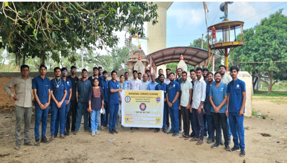 રાષ્ટ્રીય સેવા યોજના (NSS) એકમ અને વેટરનરી ક્લિનિકલ કોમ્પ્લેક્સ (VCC), પશુચિકિત્સા અને પશુપાલન મહાવિદ્યાલય, કામધેનુ યુનિવર્સિટી, સરદારકૃષિનગર દ્વારા ૨૦ સપ્ટેમ્બર, ૨૦૨૫ના રોજ, બનાસકાંઠા જિલ્લાના ધાનેરા તાલુકાના રામપુરા મોટા ગામે એક દિવસીય પશુ સારવાર કેમ્પ અને પશુપાલન શિબિરનું આયોજન કરવામાં આવ્યું હતું. આ કાર્યક્રમનો હેતુ પશુઓને આવશ્યક આરોગ્ય સેવાઓ પૂરી પાડવો અને ખેડૂતોમાં વૈજ્ઞાનિક પશુપાલન પદ્ધતિઓ અંગે જાગૃતિ ફેલાવવાનો હતો. કેમ્પમાં સ્થાનિક ખેડૂતો, પશુપાલકો, NSS સ્વયંસેવકો, ફેકલ્ટી સભ્યો તથા વિદ્યાર્થીઓએ ઉત્સાહપૂર્વક ભાગ લીધો હતો.