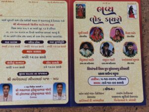 આઇ મા યોગિતા માતાજી ના સાનિધ્ય માં યોજાનાર આ પાટોત્સવ મા આઇ મા યોગિતા માતાજી ના સેવકો દ્વારા અનેરુ આયોજન કરવામાં આવ્યું છે તારીખ 5/10/205 ના રોજ સવારે 8 વાગ્યે યજ્ઞ નો પ્રારંભ કરવામાં આવસે સાથે સાથે બીડા હોય મહા પ્રસાદ સંત સન્માન તથા લોકડાયરા નુ ભવ્યાતિભવ્ય આયોજન કરવામાં આવ્યું છે જેમાં કલા જગત ના સુપ્રસિદ્ધ હાસ્યકલાકાર વિદુર આહિર તથા લોકસાહિત્ય કલાકાર નાથુદાનગઢવી લોક ગાયક કમલેશભાઇ ખુમાણ સાથે ખુશી રબારી મિતલરાઠોડ સહિત ના કલાકારો દ્વારા સંતવાણી લોક ડાયરા ની રમઝટ બોલાવશે