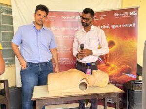 રાજકોટ શહેરમલ્ટીસ્પેશિયાલિટી વોકહાર્ટ હોસ્પિટલ ના સહયોગ બેસિક લાઇફ સપોર્ટ ટ્રેનિંગ પ્રોજક્ટર દ્વારા વિગત વાર સમજાવ્યા બાદ પ્રેક્ટિકલ્સ કરીને બતાવયુ હતું