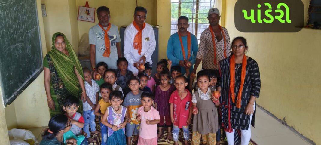 આ કાર્યક્રમ સેવા અને સમર્પણના ઉદ્દેશ્ય સાથે બાળકોમાં પોષણ અને ખુશી વહેંચવાના હેતુથી કરવામાં આવ્યો હતો.આ પ્રસંગે સનવાવ જીલ્લા પંચાયત સદસ્ય શ્રી ધીરુભાઈ મકવાણા, તાલુકા પંચાયત સદસ્ય પ્રતિનિધિ શ્રી હિરજીભાઈ પરમાર, પૂર્વ મહિલા મોરચા પ્રમુખ શ્રી ખુશ્બુબેન લખાણી, અને મંડલ ઉપ-પ્રમુખ શ્રી હસમુખલાલ લખાણી સહિતના અગ્રણીઓ ખાસ ઉપસ્થિત રહ્યા હતા.વિતરણ કાર્યક્રમમાં સનવાવ, ધ્રાબાવડ, પાંડેરી, અને આંકોલાલી ગામના સરપંચશ્રીઓ તથા ભારતીય જનતા પાર્ટી પરિવારના અન્ય આગેવાનો મોટી સંખ્યામાં હાજર રહી બાળકોને ફ્રૂટ વિતરણમાં સહયોગ આપ્યો હતો અને આંગણવાડીના નાના ભૂલકાઓને આશીર્વાદ પાઠવ્યા હતા.