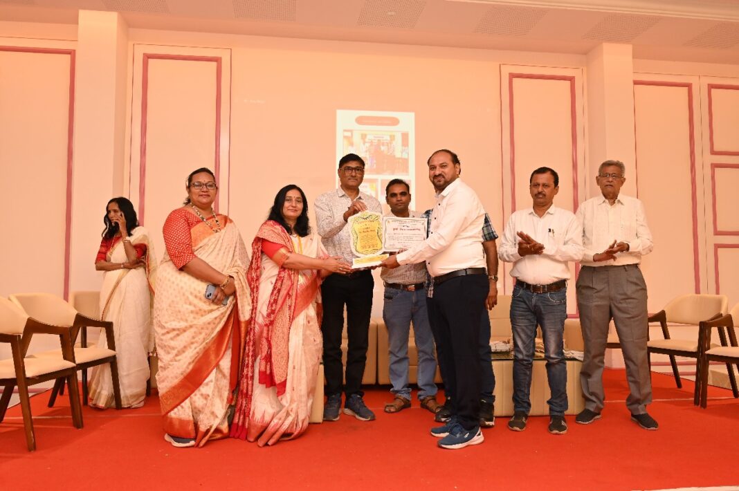 તા ૨૧/૯/૨૦૨૫ને રવિવારના રોજ હોટલ રિજન્ટા, ભુજ-કચ્છમાં ભારતીય માનવ સમાજ સેવક સંસ્થા, દિલ્હી (ઓલ ઈન્ડિયા) પ્રેરિત અને “સ્વયંસિદ્ધા” ગુજરાત ટીમ અને આઈ ડબલ્યુ સી, માધાપર સંયુક્ત ઉપક્રમે આયોજિત “ગુરુજી” શિક્ષક શ્રેષ્ઠતા એવોર્ડ કાર્યક્રમમાં ઉપસ્થિત ભુજ વિસ્તારના ધારાસભ્ય શ્રી કેશુભાઈ પટેલ, પૂર્વ કચ્છ જિલ્લા પંચાયત પ્રમુખ પારૂલબેન કારાના, ગુજરાત રાજ્ય પ્રાથમિક શિક્ષક સંઘના કાર્યાધ્યક્ષ શ્રી હરિસિંહ જાડેજા, ભુજ ડાયેટના પૂર્વ આચાર્ય સંજયભાઈ ઠાકર, કેળવણી નિરીક્ષક કિશોરભાઈ વેકરીયા, કચ્છ જિલ્લા પ્રાથમિક શિક્ષક સમાજના પ્રમુખ નયનસિંહ જાડેજા, સંસ્થાના પ્રમુખ ડૉ રૂપાલીબેન મોરબીયા, ઉપપ્રમુખ મમતાબેન ભટ્ટ, મંત્રી અર્ચનાબેન ગાંધી, રચનાબેન શાહ, મીનાબેન દાવડા, નવીનભાઈ વ્યાસ વગેરેના હસ્તે સાબરકાંઠા જિલ્લાની ઈડર તાલુકાની શ્રીમતી એમ જે મેવાડા શિવશક્તિ વિદ્યામંદિર, દિયોલીના વિજ્ઞાન શિક્ષક શ્રી સંદીપભાઈ પટેલને રાજ્ય કક્ષાનો “ગુરૂજી” શિક્ષક શ્રેષ્ઠતા એવોર્ડ એનાયત થયો હતો. આખા રાજ્યમાંથી ફક્ત ૫૧ શિક્ષકોને આ એવોર્ડ આપવામાં આવ્યો હતો. સંદીપભાઈ પટેલને અત્યારસુધી ૧૫૦થી વધારે એવોર્ડ, ટ્રોફી, શિલ્ડ અને પ્રમાણપત્રો મળેલા છે. શાળા પરિવાર દ્વારા સંદીપભાઈને ખૂબ ખૂબ અભિનંદન સાથે શુભેચ્છાઓ પાઠવવામાં આવી.