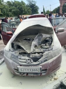 ગાડીમાં આગ લાગતા લોકોના ટોળેટોળા એકઠા થયા હતા