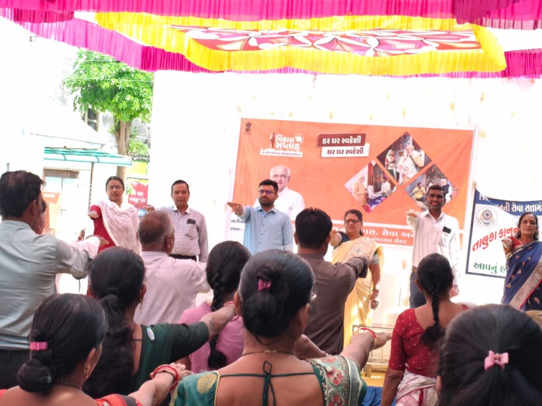 આ કાર્યક્રમમાં ઉપસ્થિત મહાનુભાવોના હસ્તે લાભાર્થીઓને વિવિધ લાભોનું વિતરણ કરવામાં આવ્યું હતું. કાર્યક્રમના અંતે ઉપસ્થિત સર્વેએ ભારત વિકાસ પ્રતિજ્ઞા લીધી હતી. આ કાર્યક્રમમાં ઉપસ્થિત સૌ કોઈએ વિકસિત ભારત અંગેની ફિલ્મ નિહાળી હતી.