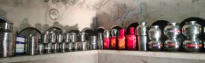 અભરાઇ પરથી વાસણો ઉતારી ને સફાઇ કરે એમાય પાછાં તાંબા પિત્તળ ના વાસણો હોય એટલે એને ઉજળાં કરવા બાવળ ના લીલા પૈડીયા લાવે અને એના થી ઘસે એટલે વાસણો સોના જેવા ચમકે.અને પછી એ વાસણો ને ઘરમાં ગોઠવતાં બે દિવસ થાય થાળીયો ની લાઇન કરે એના પછી વાટકા મુકે અને પછી ગ્લાસ અને એના પર વાટકી ચમચી એમ વ્યવસ્થીત ગોઠવે બેડાં ની ઉતરબેડ ગોઠવે આખું ઘર લાડી ની જેમ સજાવે.