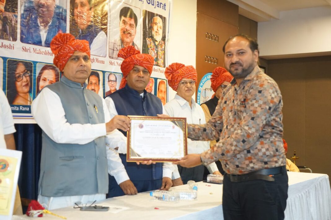 બાલરક્ષક પ્રતિષ્ઠાન મહારાષ્ટ્ર આયોજીત રાષ્ટ્રપિતા મહાત્મા ગાંધી નેશનલ એજ્યુકેશન કોન્ફ્રન્સ અને એવોર્ડ કાર્યક્રમ બાલરક્ષક પ્રતિષ્ઠાનના અધ્યક્ષ શ્રી મનોજ ચિંચોરે, સચિવ શ્રી નરેશ વાઘ તેમજ સમગ્ર ગુજરાત કોર ટીમ દ્વારા તારીખ 12/10/25ના રોજ વડોદરામાં વાણિજ્ય ભવન ખાતે યોજવામાં આવ્યો હતો. તેમાં વિવિધ રાજ્યના અને જિલ્લાના નવાચારી શિક્ષક ભાઈ બહેનો હાજર રહ્યા હતા. અતિથી તરીકે આદરણીય શ્રી ડૉ.જયપ્રકાશ સોની (વડોદરા શહેર ભાજપ પ્રમુખ ) પ્રોફેસર રમેશચંદ્ર કોઠારી. (વીર નર્મદ યુનિવર્સિટી સુરત) આદરણીય શ્રી પુલકીતભાઈ જોશી (નાયબ સચિવ, માધ્યમિક અને ઉચ્ચતર માધ્યમિક શિક્ષણ બોર્ડ ગાંધીનગર ),શ્રી તુષારભાઈ મહેતા, સચિવશ્રી એજ્યુકેશન, ગાંધીનગર, શ્રી મહેશભાઈ પાંડે (જિલ્લા શિક્ષણાધિકારી અને જિલ્લા પ્રાથમિક શિક્ષણ અધિકારી શ્રી વડોદરા) પ્રોફેસર ડોક્ટર જનકસિંઘ મીના (DGTPS, સેન્ટ્રલ યુનિવર્સિટી ઓફ ગુજરાત. કુંઢેલા, વડોદરા) શ્રી નૈષધભાઈ મકવાણા (નિવૃત જિલ્લા શિક્ષણ અધિકારી) શ્રી સનતભાઈ પંડ્યા (ફોક સિંગર) કાર્યક્રમમાં હાજર રહ્યા હતા. તમામ મહાનુભાવોની ઉપસ્થિતમાં છત્તીસગઢ, મહારાષ્ટ્ર, ઉત્તર પ્રદેશ, મધ્ય પ્રદેશ, બિહાર, કર્ણાટક અને ગુજરાતના શિક્ષકોનું એવોર્ડ આપી સન્માન કરવામાં આવ્યું હતું. વિવિધતામાં એકતાના દર્શન આ બાલ રક્ષક પ્રતિષ્ઠાના મંચ પર થયા હતા. તમામ કાર્યક્રમનું આયોજન અને સફળ સંચાલન શ્રી ધર્મેશભાઈ જોશીના માર્ગદર્શન હેઠળ કરવામાં આવ્યું હતું. આ કાર્યક્રમમાં લાઈફ ટાઈમ એચિવમેન્ટ એવોર્ડ, બેસ્ટ પ્રિન્સિપાલ એવોર્ડ, પી.એચ.ડી એવોર્ડ, નેક્સ્ટ વિઝનરી સાયન્સ ટીચર એવોર્ડ, બેસ્ટ ક્રિએટિવ ટીચર એવોર્ડ આપવામાં આવ્યા હતા. જેમાં સાબરકાંઠા જિલ્લાની ઈડર તાલુકાની શ્રીમતી એમ.જે.મેવાડા શિવશક્તિ વિદ્યામંદિર, દિયોલીના વિજ્ઞાન શિક્ષક અને જાણીતા કવિ શ્રી સંદીપ પટેલ”કસક”ને નેશનલ કક્ષાનો નેક્સ્ટ વિઝન સાયન્સ ટીચર તરીકેનો એવોર્ડ આપવામાં આવ્યો હતો. તેમના દ્વારા કરવામાં આવેલી શૈક્ષણિક, સાંસ્કૃતિક, સામાજિક, પર્યાવરણ લક્ષી પ્રવૃતિઓ તથા વિધાર્થીઓના સર્વાંગીણ વિકાસના કાર્યની નોંધ લઈને આ એવોર્ડ એનાયત થયો હતો. શિક્ષકશ્રીને નેશનલ કક્ષાનો પારિતોષિક મળવા બદલ શાળા પરિવાર દ્વારા અઢળક શુભેચ્છાઓ પાઠવવામાં આવી હતી.
