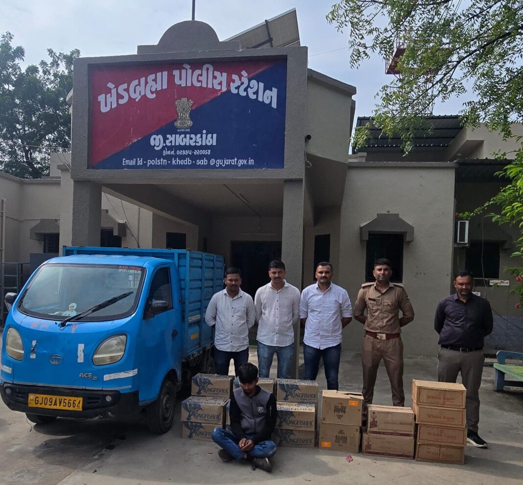 નાયબ પોલીસ મહાનિરીક્ષક સા.શ્રી વિરેન્દ્રસિંહ યાદવ IPS ગાંધીનગર વિભાગ, ગાંધીનગર તથા પોલીસ અધિક્ષક શ્રી ડૉ. પાર્થરાજસિંહ ગોહીલ IPS સાબરકાંઠા નાઓએ પ્રોહી-જુગારની પ્રવૃત્તી નેસ્તનાબુદ થાય તે રીતે અસરકારક કામગીરી કરવા સુચના કરેલ હોઇ જે સુચના અન્વયે નાયબ પોલીસ અધિક્ષક શ્રી સ્મિત ગોહિલ સાહેબ ઇડર વિભાગ, ઇડર નાઓના સીધા માર્ગદર્શન હેઠળ ડી.એન.સાધુ પોલીસ ઇન્સ્પેક્ટર ખેડબ્રહ્મા પોલીસ સ્ટેશનનાઓએ સર્વેલન્સ સ્ટાફના માણસોને આ દિશામા સતત વોચ રાખી કાર્યરત રહેવા સુચન આપેલ જે સુચના આધારે તા. ૨૯-૧૦-૨૫ ના રોજ ખેડબ્રહ્મા પોલીસ સ્ટેશન વિસ્તારમાં તેઓ તથા સર્વેલન્સ ટીમના માણસો પેટ્રોલિંગમાં હતા તે દરમ્યાન પો.કો.પ્રદિપસિંહ નાઓને બાતમી હકીકત મળેલ કે, ખેરોજથી ખેડબ્રહ્મા તરફ એક વાદળી કલરની ટેમ્પી ભંગારની નીચે ભારતીય બનાવટનો વિદેશી દારૂ ભરીને આવે છે જે હકીકત આધારે મટોડા રોયલ પાર્ક હોટલ પાસે નાકાબંધી કરી વૉચમાં હતા. તે દરમ્યાન સદર વર્ણન વાળી ટેમ્પી આવતાં જેમાં ચેક કરતાં ભંગારની નીચેથી વિદેશીદારૂ તથા બીયરની અલગ અલગ બ્રાન્ડની કુલ બોટલ નંગ ૬૪૮ જેની કીંમત રૂપીયા કિ.રૂ.૧,૦૧,૫૨૦/-નો તથા ટાટા એસ.ઇ.ઝેડ.આઇ ટેમ્પીની કીંમત રૂપીયા ૫૦,૦૦૦/- ની મળી કુલ રૂપીયા ૧,૫૧,૫૨૦/-નો મુદ્દામાલ તપાસ અર્થે કબ્જે લઇ ખેડબ્રહ્મા પોલીસ સ્ટેશન ખાતે આરોપી રમેશચંદ્ર હૂકમિચંદ ખટીક હાલ રહે. ઉસર તા. કુંભલગઢ જી. રાજસ્થાન વિરૂધ્ધ કાયદેસરની કાર્યવાહી કરી પ્રોહીબીશન એક્ટ મુજબ ગુનો દાખલ કરવામાં આવેલ છે.
