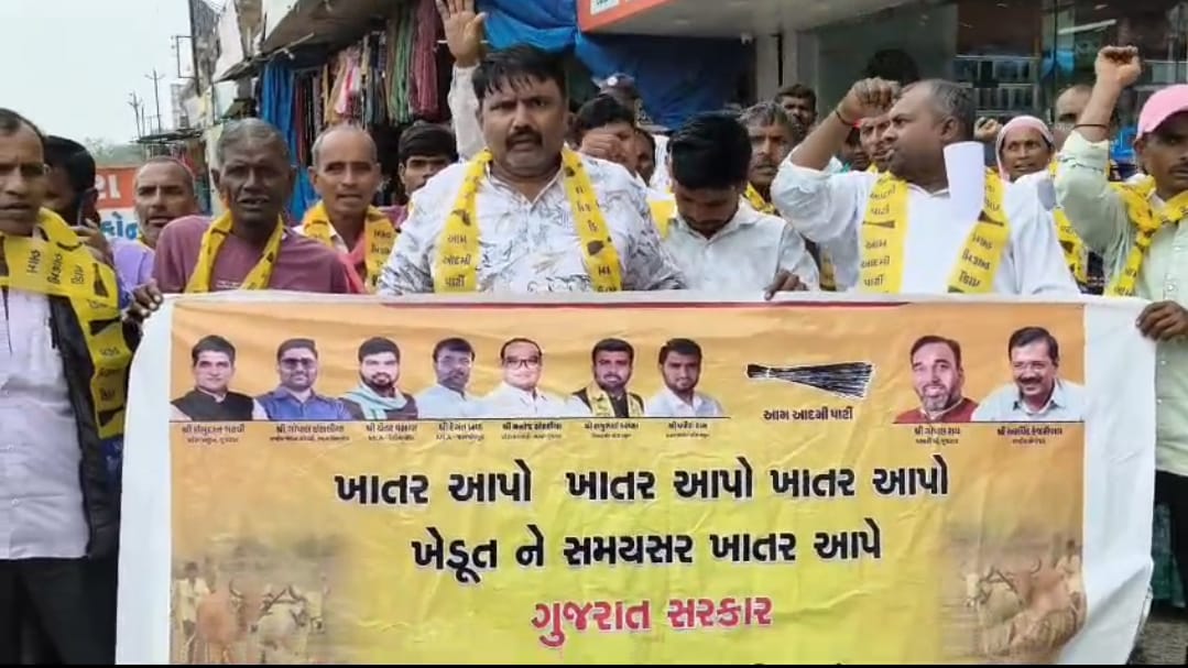 મેઘરજ તાલુકા ખાતે આમ આદમી પાર્ટી દ્વારા ખાતરની અછતને લઈને મામલતદારને રેલી સ્વરૂપે મોટી સંખ્યામાં આવેદનપત્ર આપ્યું