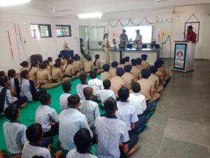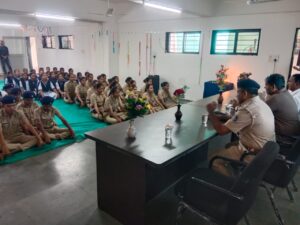 તેમજ વિદ્યાર્થીઓને બપોરનું સ્વાદિષ્ટ ભોજન આપવામાં આવેલ તેમજ કેમ્પના સમાપન કાર્યક્રમનું આયોજન કરવામાં આવેલ જેમાં કાર્યક્રમ ની શરૂઆત થાણા અમલદાર શ્રી નુ કુમકુમ તિલક કરી આવકારી તથા દિપ પ્રાગટય કરી કરવામાં આવેલ જેમાં સાઇબર ક્રાઇમ અને આઇટી સેલ અંતર્ગત જાણકારી આપવામાં આવી હતી