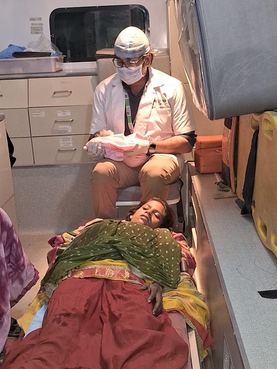 વિજયનગર તાલુકાના સારોલી ગામના ચકુબેન બચુભાઈ ખરાડી ઉમર 25 વર્ષ ને અચાનક પ્રસુતિની પીડા થતા 108 માં કોલ કર્યો હતો તે દરમિયાન ખેડબ્રહ્મા 108 ના ઇએમટી રાકેશ પ્રજાપતિ પાયલોટ પ્રવીણભાઈ પરમાર બંને તાત્કાલિક 108 લઈને સ્થળ તરફ જવાના રવાના થયા હતા ત્યારબાદ સ્થળ ઉપર પહોંચીને જોતા દર્દી અતિ જોખમી સગર્ભા હોવાથી તે દર્દીને હિંમતનગર સિવિલ લઈ જતા દર્દીને અચાનક પ્રસુતિનો દુખાવો વધુ થતા એમ્બ્યુલન્સ માં ફરજ પરના ઇએમટી રાકેશ પ્રજાપતિ એ પાયલોટ પ્રવીણભાઈ પરમાર ની મદદ લઈ સફળતાપૂર્વક ડિલિવરી કરાવતા તંદુરસ્ત બાળકને જન્મ આપ્યો હતો ERCP ડોક્ટરના યોગ્ય માર્ગદર્શન હેઠળ મેડિકલ સારવાર આપી તેમજ માતા અને બાળકને હિંમતનગર સિવિલ હોસ્પિટલ ખાતે દાખલ કરવામાં આવ્યો હતો