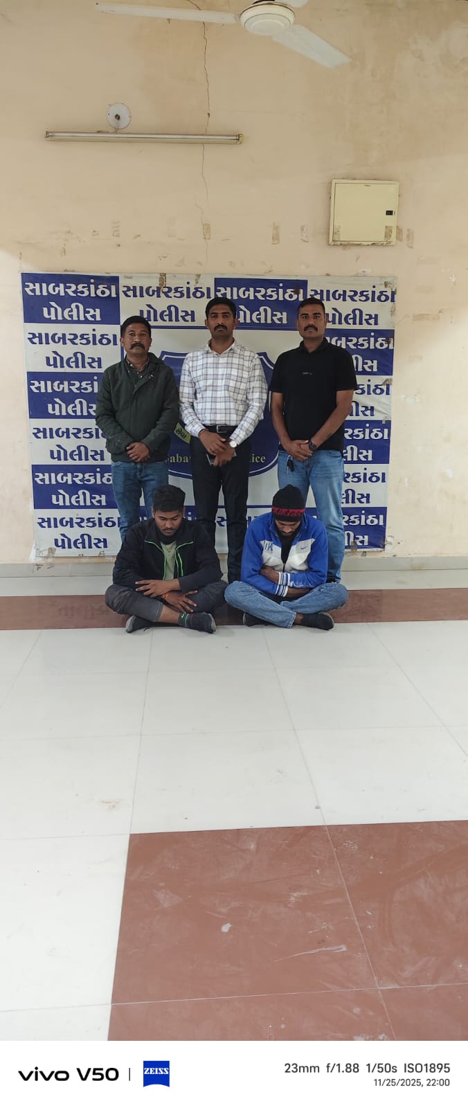 નાયબ પોલીસ મહા નિરીક્ષક શ્રી વિરેન્દ્રસિંહ યાદવ સાહેબ જિલ્લામાં કાયદો અને વ્યવસ્થા જળવાઈ રહે તથા કોઈ અનિચ્છનીય બનાવ ન બને તે માટે એ ટી એસ ચાર્ટર લગતી કામગીરી કરવા તથા નાસતા ફરતા આરોપી પકડી પાડવા સૂચના આપેલ હતી જે આધારે પોલીસ અધિક્ષક શ્રી ડો. પાર્થ રાજસિંહ ગોહિલ સાહેબ ના ઓએ વધુમાં વધુ નાખતા ફરતા આરોપી પકડી પાડવા સૂચના આપેલ હતી જે આધારે ઇન્ચાર્જ પોલીસ ઇન્સ્પેક્ટર ડી સી સાકરીયા એસ ઓ જી સાબરકાંઠા ની સૂચના મુજબ શ્રી કે યુ ચૌધરી પોલીસ સબ ઇન્સ્પેક્ટર એસ ઓ જી સાબરકાંઠા ના માર્ગદર્શન હેઠળ એસ ઓ જી સ્ટાફ એ પી એસ ચાર્ટર નક્કી કામગીરી બાબતે પેટ્રોલિંગમાં હતા તે દરમિયાન અમદાવાદ શહેર બાપુનગર પોલીસ સ્ટેશનના ભારતીય ન્યાય સહિતા 2023 ની કલમ 331 (2) 331 (3) 331 (4) 305 (ક) મુજબના ગુનાના નાસતા ફરતા આરોપીઓ પૈકી મયુર ઇશ્વરભાઇ ભાટ ઉંમર વર્ષ 23 રહે. હરીનગર કાટવાડ રોડ હિંમતનગર જિલ્લા. સાબરકાંઠા વાળા બાબતે એએસઆઈ અનિરુદ્ધસિંહ તથા પો.કો. કલ્પેશકુમાર કેશુભાઈ ને મળેલ સંયુક્ત ખાનગી બાતમી આધારે નાસતા ફરતા આરોપીઓ વિદ્યાનગરી આગળ કાટવાડ જતા રોડ ઉપરથી મળી આવતા ભારતીય નાગરિક સુરક્ષા સહિતા 2023 થી કલમ 35 (1) (જે) મુજબ અટકાયત કરી આગળની કાર્યવાહી માટે ડિવિઝન પોલીસ સ્ટેશન ને સોંપવામાં આવ્યા