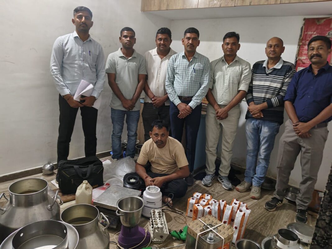 જે મકાનમાં અંદર ઈસમ બનાવટી દૂધ બનાવી છે વગેરે બાતમી હકીકત અન્વયે ખોરાક અને ઔષધ નિયમન તંત્ર હિંમતનગર ની સાથે રાખી પંચો રૂબરૂ જણાવેલ તપાસ કરતા નીચે મુજબનો મુદ્દા માલ મળી આવતા આરોપી વિરુદ્ધમાં જાદર પોલીસ સ્ટેશન ખાતે તથા ફૂડ એન્ડ ડ્રગ્સ વિભાગ હિંમતનગર ખાતે આગળની કાયદેસરની કાર્યવાહી કરવામાં આવી.