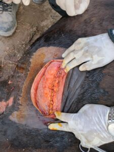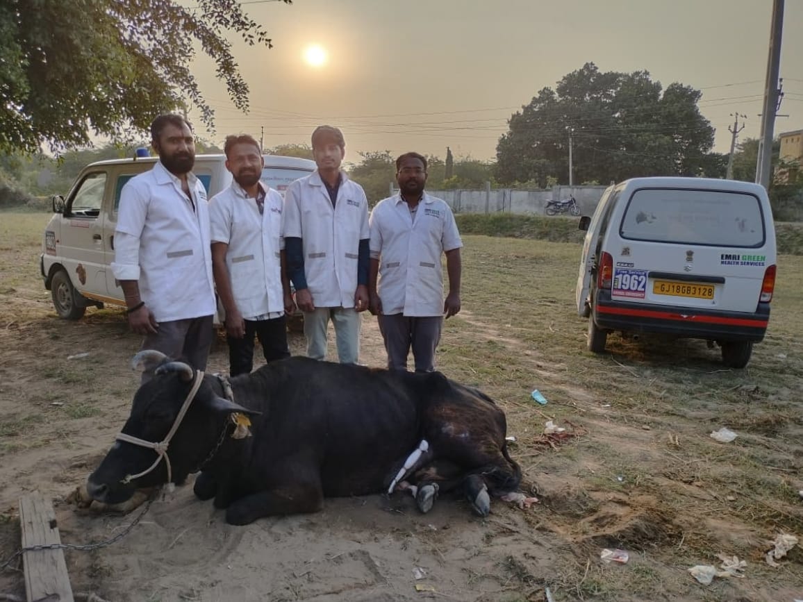 બનાસકાંઠા જિલ્લામાં પશુપાલન વિભાગ અને ઈ.એમ.આર.આઇ ગ્રીન હેલ્થ સર્વિસ દ્વારા ફરતુ પશુ દવાખાનુ કાર્યરત છે જેમાં થરાદ તાલુકા નાં સણાવિયા ગામમાં કાર્યરત છે. સણાવિયા ગામના ઉમાભાઈ ઠાકોર એ જણાવ્યું કે મારી ગાય સવાર ની વાતની વિયાનમાં કરતી નહિ અને પેટમાં આંટી છે, તો હાલ એ ગાય બહુ પીડિત હાલત માં છે. આ વાત ની જાણ દસ ગામ દીઠ ફરતા પશુ દવાખાનાં નાં પશુ ચિકિત્સક ડૉ. સંજય કુંભાર અને વિક્રમભાઈ રાજપૂત તથા પાયલોટ કમ ડ્રેસર નવીનભાઈ પઢાર ને જાણ થતાં એ તાત્કાલિક સ્થળ પર પહોંચી ગાય ની ચકાસણી કરતા ગાયનું બચ્ચું પેટમાં મરી ગયું હતું