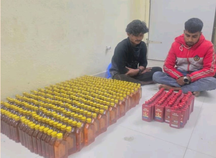 ગીર સોમનાથ જિલ્લામાં કાયદો અને વ્યવસ્થાની સુદૃઢ જાળવણી તેમજ જુગાર અને પ્રોહિબિશન જેવી ગેરકાયદેસર પ્રવૃત્તિઓને નેસ્તનાબૂદ કરવા માટે પોલીસ દ્વારા સતત અસરકારક કામગીરી કરવામાં આવી રહી છે. એલ.સી.બી.ના પોલીસ ઇન્સ્પેક્ટર શ્રી એસ.વી. રાજપૂત, પોલીસ સબ ઇન્સ્પેક્ટર શ્રી એ.સી. સિંધવ તથા પોલીસ સબ ઇન્સ્પેક્ટર શ્રી એચ.એલ. જેબલિયા નાઓની રાહબરીમાં એલ.સી.બી. સ્ટાફ દ્વારા મળેલ સંયુક્ત બાતમીના આધારે કાર્યવાહી હાથ ધરવામાં આવી હતી.પ્રાપ્ત બાતમી મુજબ નવાબંદર મરીનના તડ આઉટ પોસ્ટ પાસે છાપો મારી પોલીસ દ્વારા ભારતીય બનાવટના વિદેશી દારૂની અલગ–અલગ બ્રાન્ડની બોટલો સાથે બે ઇસમોને ઝડપી પાડવામાં આવ્યા હતા. આ મામલે નવાબંદર મરીન પોલીસ સ્ટેશન ખાતે ગુનો નોંધાઈ કાયદેસરની કાર્યવાહી હાથ ધરવામાં આવી છે.