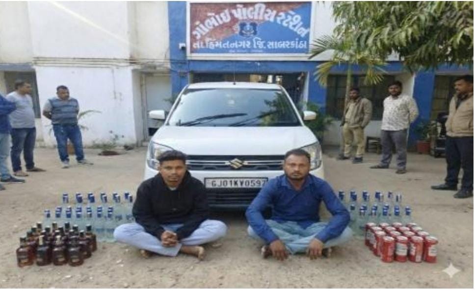 પોલીસ મહાનિરીક્ષક શ્રી વિરેન્દ્રસિંહ યાદવ સાહેબ IPS ગાંધીનગર વિભાગ, તથા પોલીસ અધિક્ષક શ્રી ડો.પાર્થરાજસિંહ ગોહિલ સાહેબ IPS સાબરકાંઠા હિંમતનગર નાઓએ પ્રોહી પ્રવૃત્તિ નેસ્ત નાબુદ કરવા પ્રોહીના કેસો શોધી કાઢવા સુચના અને માર્ગદર્શન આધારે શ્રી એ.કે.પટેલ સા.વિભાગીય પોલીસ અધિકારી હિંમતનગર વિભાગ, હિંમતનગર નાઓની સુચના અને માર્ગદર્શન એસ.જે.ગોસ્વામી પોલીસ ઇન્સ્પેકટર ગાંભોઇ પોલીસ સ્ટેશન નાઓએ ગાંભોઇ પોલીસ સ્ટેશનના દરેક પોલીસ કર્મચારીઓને પ્રોહીના કેસો શોધી કાઢવા સુચના આપેલ તે અનુસંધાને ગાંભોઇ રણાસણ ત્રણ રસ્તા ખાતે રોડ ઉપર વાહન ચેંકિંગમાં કરતા હતા.તે દરમ્યાન શામળાજી તરફના રોડેથી બાતમી હકિકત વાળી સફેદ કલરની વેગેનાર ગાડી શંકાસ્પદ હાલતમાં આવતાં સદરી વેગેનાર ગાડીના ચાલકને હાથનો ઇશારો કરી ગાડીને રોડની સાઇડમાં ઉભી રખાવી અને ગાડીમાં તપાસ કરતાં ભારતીય બનાવટના વિદેશી દારૂ/બિયર ટીનનો જથ્થો ગે.કા.રીતે ભરેલ હોઇ જેથી વેગેનાર ગાડીના ચાલક (૧) ભૈરા સ/ઓ ધનેશ્વર લક્ષ્મણ ડામોર ઉ.વ.૩૨ રહેવાસી.પાલ દેવલ (ડામોર ફળો) તા.દેવલ જી.ડુંગરપુર (રાજસ્થાન) (૨) મુકેશ સ/ઓ કુરીચંન્દ્ર ગોમાજી ભીલ (આદિવાસી) ઉ.વ.૨૬ રહેવાસી.પાલ દેવલ(ડામોર ફળો) તા.દેવલ જી.ડુંગરપુર (રાજસ્થાન) નાઓએ ખોટી નંબર પ્લેટ બનાવી સાચા તરીકે ઉપયોગ કરી વેગેનાર ગાડીમાંથી ભારતીય બનાવટના વિદેશી દારૂ/બિયર ટીન નંગ -૧૦૪૭ જેની કી.રૂ.૪,૫૦,૧૧૦/- તથા મોબાઈલ ફોન નંગ-૨ ની કિ.રૂ.૬૦૦૦/- તથા વેગેનાર ગાડી ની કિ.રૂા.૪,૦૦,૦૦૦/-ની મળી કુલ મુદ્રામાલ કિ.રૂા. ૮,૫૬,૧૧૦/-નો કબ્જે કરેલ જે બાબતે ગાંભોઈ પો.સ્ટે.સી.પાર્ટ ગુ.ર.નંબર-૧૧૨૦૯૦૧૪૨૫૦૭૩૭/૨૦૨૫ ધી ગુજરાત પ્રોહિ એકટ કલમ.૬૫ એ.ઈ,૮૧,૮૩ ભારતીય ન્યાય સંહિતા ૨૦૨૩ ની કલમ ૩૩૬(૨),૩૪૦(૨) મુજબનો ગુન્હો દાખલ કરી કાયદેસરની કાર્યવાહી કરવામાં આવેલ છે.