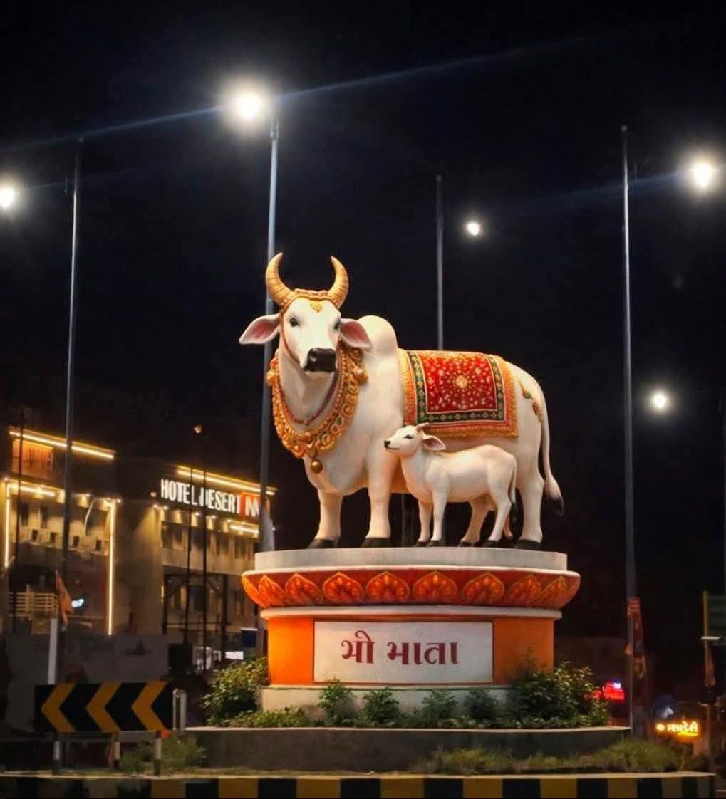 થરાદ ચાર રસ્તા ઉપર ગૌ માતા ની પ્રતિમા મુકાશે ગૌ ભકતૌ માં ખુશી ની માહોલ