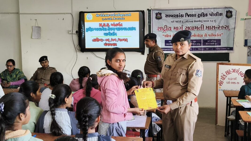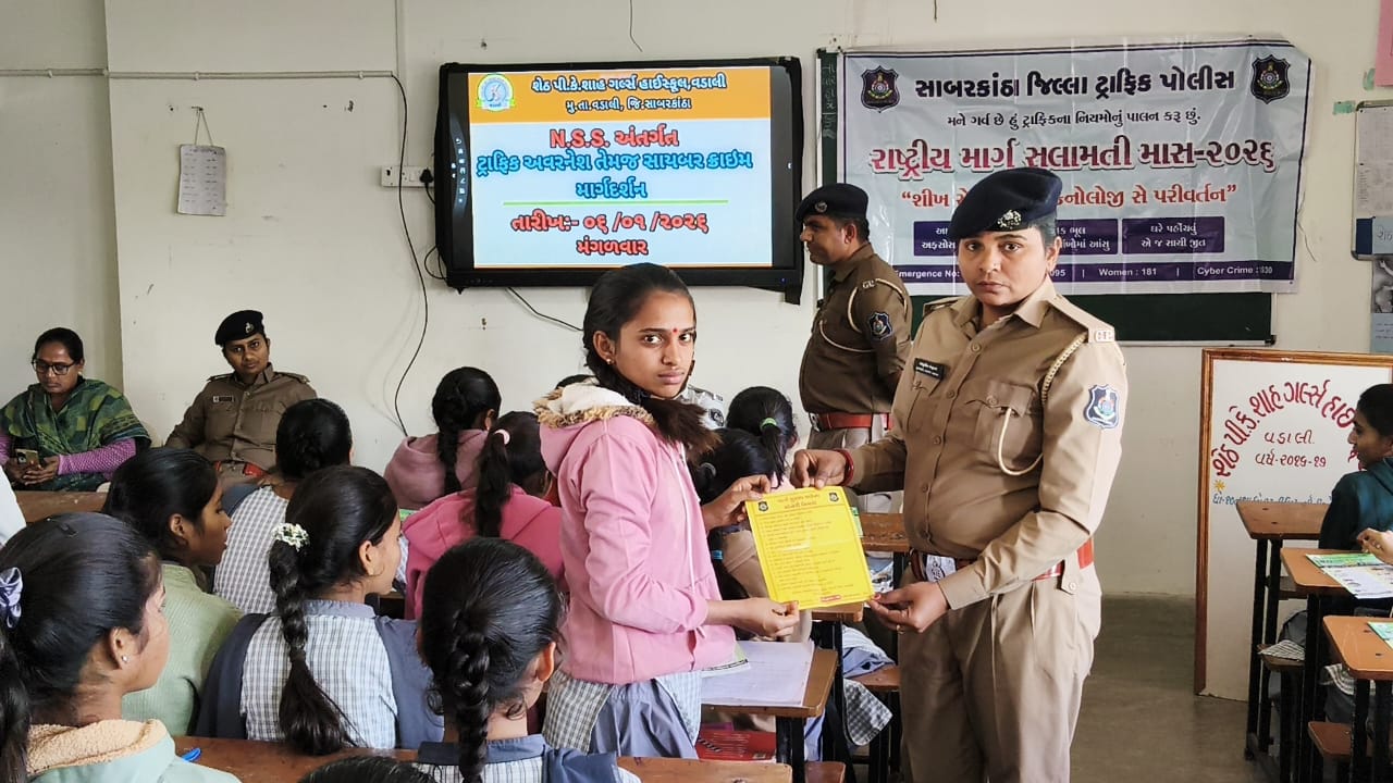 વડાલીની શેઠ પી.કે.શાહ ગર્લ્સ હાઈસ્કૂલ ખાતે ટ્રાફિક અવેરનેસ અને સાયબર ક્રાઇમ માર્ગદર્શન કાર્યક્રમ યોજાયો