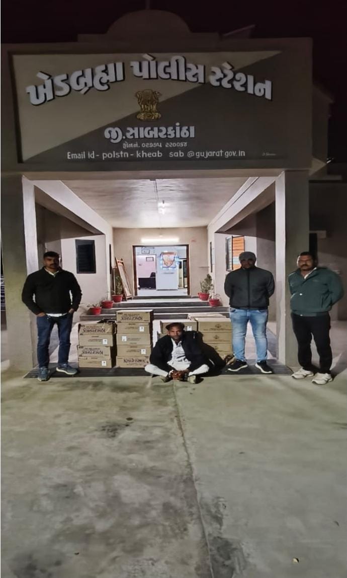 પોલીસ સ્ટેશન વિસ્તારમાં અમો તથા સર્વેલન્સ ટીમના માણસો પેટ્રોલિંગમાં હતા તે દરમ્યાન બાતમી હકીકત મળેલ કે, મહાદ(રાજસ્થાન) તરફથી ખેડબ્રહ્મા તરફ એક ગ્રે કલરની મારુતિ ઈકો ગાડીમાં ભારતીય બનાવટનો વિદેશી દારૂ ભરીને આવે છે જે હકીકત આધારે ખેડબ્રહ્મા પરોયા ત્રણ રસ્તા નજીક રોડ ઉપર નાકાબંધી કરી વૉચમાં હતા તે દરમ્યાન સદર વર્ણન વાળી ઈકો ગાડી આવતાં જેમાં ચેક સદર ઈકો ગાડીની અંદર વિદેશીદારૂ તથા બીયરની અલગ અલગ બ્રાન્ડની કુલ બોટલ નંગ-૮૬૪ જેની કીંમત રૂપીયા કિ.રૂ.૧,૨૭,૮૭૨ /-નો તથા ઈકો ગાડીની કીંમત રૂપીયા ૨,૫૦,૦૦૦/- ની મળી કુલ રૂપીયા ૩,૭૭,૮૭૨ /-નો મુદ્દામાલ તપાસ અર્થે કબ્જે લઈ ખેડબ્રહ્મા પોલીસ સ્ટેશન ખાતે આરોપી વિરૂધ્ધ કાયદેસરની કાર્યવાહી કરી પ્રોહીબીશન એક્ટ મુજબ ગુનો દાખલ કરવામાં આવેલ છે.