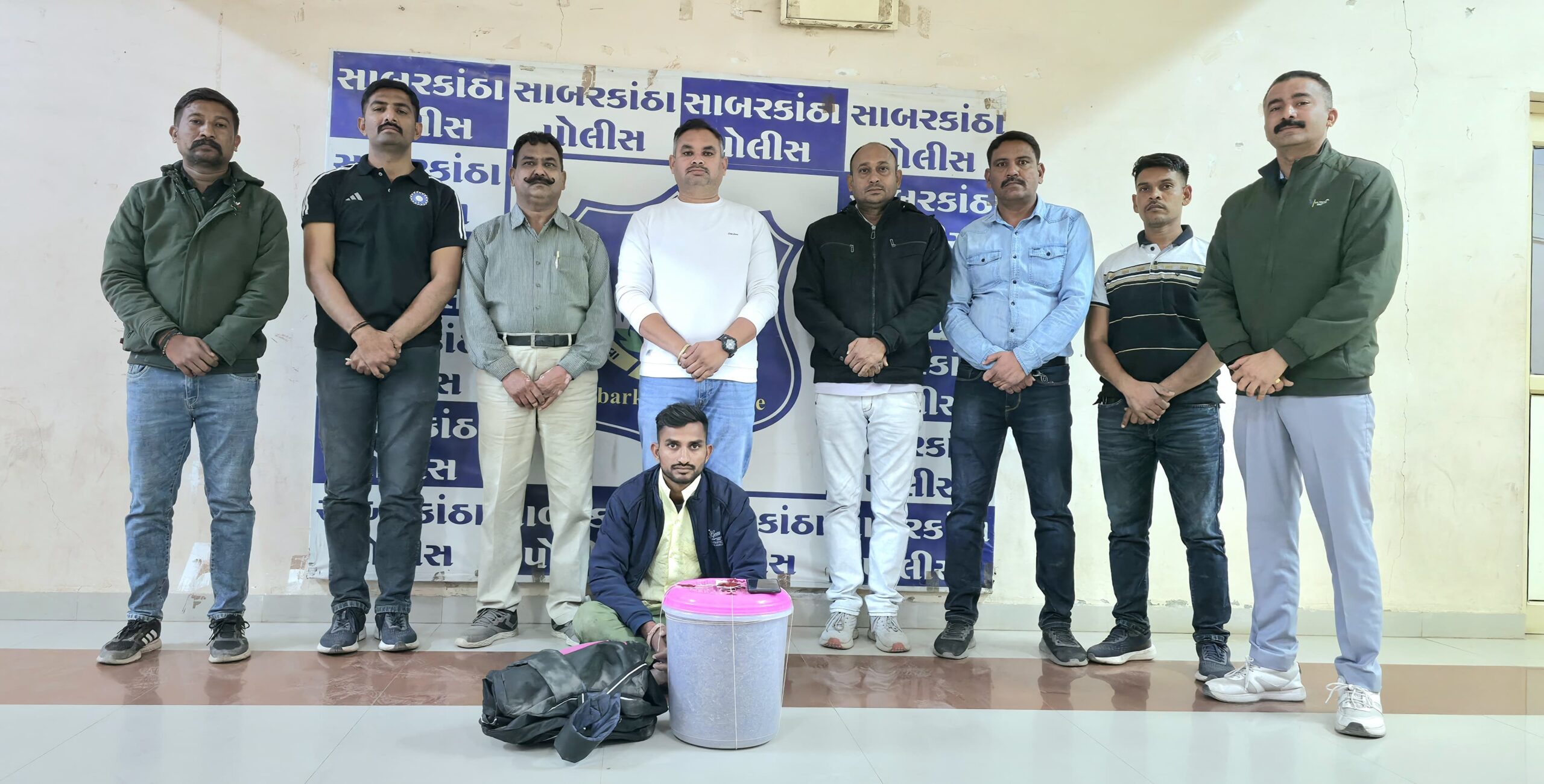 નાયબ પોલીસ મહાનિરીક્ષકશ્રી વિરેન્દ્રસિંહ યાદવ સાહેબ નાઓએ સાબકાંઠા જીલ્લામાં નાર્કોટીક્સ ડ્રગ્સની બદીને નેસ્ત નાબુદ કરવા તથા એ.ટી.એસ. ચાર્ટર લગત કામગીરી કરવા સુચના કરેલ. જે અન્વયે પોલીસ અધિક્ષકશ્રી ડૉ.પાર્થરાજસિંહ ગોહિલ સાહેબ નાઓએ જીલ્લામાં નશાકારક ડ્રગ્સનું વેચાણ કરી આમ જનતાના સ્વાસ્થ્ય સાથે ચેડા થતા હોય તથા યુવાધન આવા ડ્રગ્સનું સેવન કરીને નશાખોરીના રવાડે ચઢતું હોય જેથી આવા ડ્રગ્સનું વેચાણ કરતા તથા ડ્રગ્સનું સેવન કરતા ઇસમો શોધી કાઢી તેમના વિરૂધ્ધમાં કાર્યવાહી કરવા સુચના કરેલ. જે સુચના અન્વયે પો.ઇન્સ. ડી.સી. પરમાર એસ.ઓ.જી.સાબરકાંઠા નાઓની સુચના મુજબ શ્રી.પી.એમ.ઝાલા પો.સ.ઇ. એસ.ઓ.જી.સાબરકાંઠા નાઓના માર્ગદર્શન હેઠળ એસ.ઓ.જી.સ્ટાફ એ.ટી.એસ.ચાર્ટર લગત કામગીરી બાબતે હિંમતનગર બી ડીવિજન પોઉસ્ટ, વિસ્તારમાં પેટ્રોલીંગમાં હતો દરમ્યાન એ.એસ.આઇ. જયદિપકુમાર દિનેશચંન્દ્ર બ.નં-૫૦ તથા અ.હે.કોન્સ. ભાવિનકુમાર રસિકલાલ બ.નં- ૪૮૧ નાઓને તેમના ખાનગી બાતમીદારથી સંયુક્ત બાતમી હકિક્ત મળેલ કે, એક ઇસમ નારાયણી વેર હાઉસ ધ્રણિધા ગામ જવાના નાકે હાઇવે રોડ ઉપર ઇડર બાજુથી આવનાર છે. જેને વાદળી કલરનું જેકેટ તથા નીચે લીલા કલરનું પેન્ટ પહેરેલ છે,જે ઇસમના થેલામાં માદક પદાર્થ ગાંજો ભરેલ છે. વિગેરે બાતમી હકિક્ત અન્વયે તાત્કાલીક સદરી જગ્યાએ સરકારી પંચો રૂબરૂ જઇ વોચ તપાસમાં હતા દરમ્યાન નીચે જણાવેલ ઇસમના કબજા ભોગવટામાંથી નીચે મુજબનો મુદ્દામાલ મળી આવતાં તમામ મુદ્દામાલ કબજે લઇ સદરી આરોપી વિરૂધ્ધમાં હિંમતનગર બી ડીવિજન પો.સ્ટે.કાર્યદેસરની કાર્યવાહી કરવામાં આવેલ છે, અટક કરેલ આરોપીનું નામ