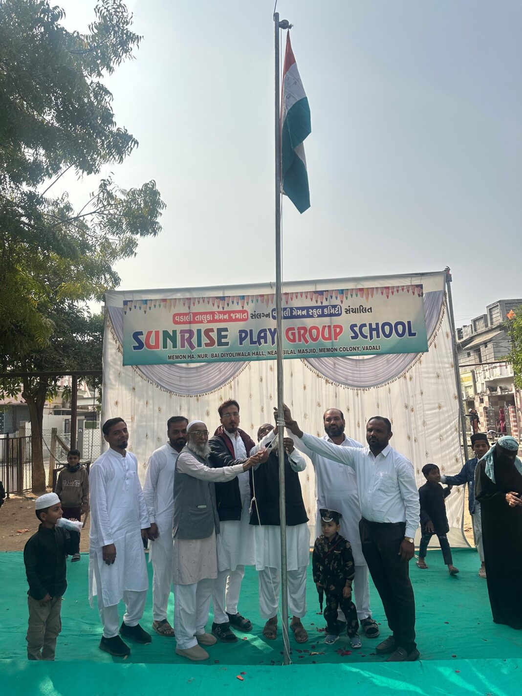 વડાલી તાલુકા મેમણ જમાત સંલગ્ન, વડાલી તાલુકા મેમણ સ્કૂલ કમિટી સંચાલિત,સનરાઈઝ પ્લે ગ્રુપ સ્કૂલ વડાલી દ્વારા વડાલી મેમણ કોલોની શાહીન પાર્ક બગીચામાં 77માં પ્રજાસત્તાક દિન નિમિત્તે ભવ્ય ધ્વજ વંદન કાર્યક્રમ યોજવામાં આવ્યો તથા જેનું આપણે સૌ વર્ણન ન કરી શકીએ તેવા અતિ સુંદર રાષ્ટ્રીય પ્રોગ્રામ નાના – નાના બાળકો દ્વારા પ્રસ્તુત કરવામાં આવ્યા.