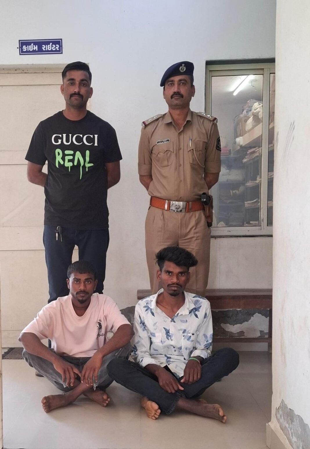 વડાલી પોલીસ સ્ટેશનના પીએસઆઇ કે એલ જાડેજા અને પોલીસ સ્ટાફ ના માણસો સાથે વડાલી ટાઉન વિસ્તારમાં પેટ્રોલિંગમાં હતા તે દરમિયાન પો.કો. નરેશભાઈ મોતીભાઈ ને બાતમી મળી કે ખેરોજ પોલીસ સ્ટેશનના ગુનામાં ચાર વર્ષથી નાસતા ભરતા આરોપીઓ 1. માવાભાઈ ચુનીયાભાઈ જાતિ ખોખરીયા રહે. જોગીવડ તાલુકો. કોટડા જીલ્લો ઉદેપુર બે રણાભાઇ છગનાભાઈ ગમાર રહે. જોગીવડ તાલુકો. કોટડા જીલ્લો ઉદેપુર રાજસ્થાન વાળા ને ધરોઈ ત્રણ રસ્તા ખાતે ઉભો રહે છે જેમાં એક ઈસમે આછા ભૂરા ગુલાબી રંગ કલરનું ટીશર્ટ તથા કમરે કાળા કલરનું પેન્ટ પહેરેલ છે તથા બીજો ઈસમ સફેદ ફૂલની ભાત વાળું શર્ટ પહેરેલ છે અને કાળા કલરનું જીન્સ પેન્ટ પહેરેલ છે જે બાતમીના આધારે ધરોઇ ત્રણ રસ્તા ખાતે જઈ ચેક કરતા ઉપરના વર્ણન વાળા ઈસમો મળી આવતા ઊભા રાખી બંનેના નામ ઠામ પૂછતા તેણે પોતાનું નામ માવાભાઈ ચુનિયાભાઈ જાતે ખોખરીયા ઉંમર વર્ષ 27 ધંધો મજૂરી રહે. જોગીવડ તાલુકો કોટડા જીલ્લો ઉદેપુર 2. રાણાભાઇ છગનભાઈ ગમાર ઉંમર વર્ષ.26 ધંધો મજૂરી રહે જોગીવડ તાલુકો કોટડા જીલ્લો ઉદેપુર રાજસ્થાનના હોવાનું જણાવતા હોય અને વધુ પૂછપરછ કરતા ઉપરના ગુનામાં પોતે સામેલ હોવાની કબુલાત કરી વડાલી પોલીસે સ્ટેશન ખાતે લાવી ડીટેઇન કરી આગળની કાર્યવાહી કરી ખેડુત પોલીસ સ્ટેશનને આગળની કાર્યવાહી કરવા જાણ કરવામાં આવી