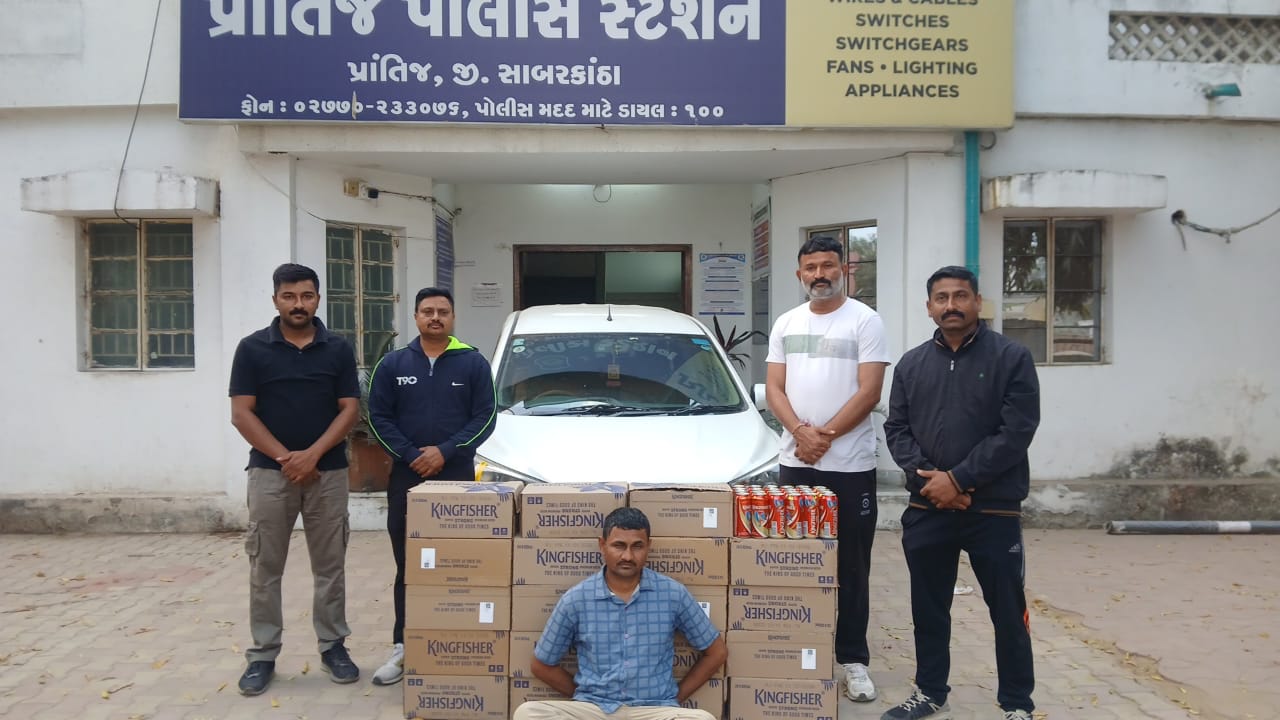 ઉપરોકત ટીમના માણસો તા.૧૮/૦૨/૨૦૨૬ નારોજ પ્રાંતિજ પો.સ્ટે. વિસ્તારમાં પ્રેટ્રોલીંગમાં હતા દરમ્યાન અ.હે.કો. પ્રકાશભાઈ તથા અ.હે.કો. જીજ્ઞેશકુમાર નાઓને મળેલ બાતમી આધારે પ્રાંતીજ ટોલનાકા નજીક કતપુર ગામ જવાના નાકા પાસે વૉચ નાકાબંધીમાં ઉભા રહેલ દરમ્યાન બાતમી મુજબ હિંમતનગર તરફથી પ્રાંતીજ ટોલનાકા તરફ એક અર્ટીકા ગાડી સફેદ કલરની GJ 18 BM 6772 ની આવતાં તેને આદશ કરી રોકતાં ગાડીના ચાલકે ગાડી ધીમી કરી થોડેક દૂર જઇ તેમાં બેસેલ ચાલક તથા બાજુમાં બેસેલ ઇસમ ભાગવા લાગતાં સાથેના પોલીસના માણસોએ પીછો કરી ગાડીના ચાલકને પડી પાડેલ તેમજ બીજો ઇસમ ભાગી ગયેલ તેમજ પકડાયેલ ઇસમનું નામઠામ પુછી ગાડીમાં ચેક કરતાં ભારતીય બનાવટના વિદેશી બીયરની પેટીઓ ભરેલ હોઈ વિદેશી બીયર વહન કરવા અંગેનુ પાસપરમીટ માગતાં જે તેની પાસે ન હોઈ મળી આવેલ બીયર વિગેરે મળી કુલ કિ.રૂ.૬,૧૦,૬૦૦/- નો મુદ્દામાલ તપાસ અર્થે કબ્જે કરી આરોપીઓ વિરૂધ્ધ પ્રાંતિજ પોલીસ સ્ટેશન પાર્ટ સી.ગુ.ર.
