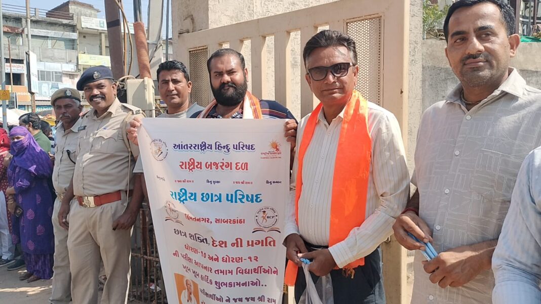શ્રી હિંમત હાઈસ્કુલ ખાતે ધોરણ ૧૨ ના વિદ્યાર્થીઓની પરીક્ષાના શુભારંભ પ્રસંગે આંતરરાષ્ટ્રીય હિન્દુ પરિષદ રાષ્ટ્રીય બજરંગ દળ ના આગેવાનો ઉપસ્થિત રહ્યા હતા. તેમણે દરેક વિદ્યાર્થીઓને કુમકુમ તિલક કરીને શુભેચ્છાઓ પાઠવી હતી અને દરેક વિધાર્થીઓ ને એક એક પેન પણ ભેટમાં આપી હતી અને ભગવાન ને પ્રાર્થના કરી હતી કે તમામ વિધાર્થીઓ નું ભવિષ્ય ઉજ્જવળની કામના કરી હતી…