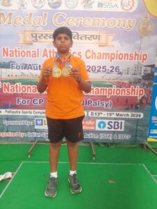 બિહારના પટના સ્થિત પાટલીપુત્ર સ્પોર્ટ્સ કોમ્પ્લેક્સ ખાતે ૧૩ થી ૧૫ માર્ચ, ૨૦૨૬ દરમિયાન ૨૧મી નેશનલ એથ્લેટિક્સ ચેમ્પિયનશિપ ફોર સેરેબ્રલ પાલ્સી (CP) નું ભવ્ય આયોજન કરવામાં આવ્યું હતું. આ રાષ્ટ્રીય કક્ષાની સ્પર્ધામાં જુદા-જુદા ૧૯ રાજ્યોના ૩૦૦થી વધુ ખેલાડીઓએ ભાગ લીધો હતો. જેમાં ગુજરાતમાંથી કુલ ૪૦ ખેલાડીઓએ ઉત્સાહભેર ભાગ લીધો હતો. જેમાં સાબરકાંઠા જિલ્લાના બે સેરેબ્રલ પાલ્સી ખેલાડીઓએ પોતાની મર્યાદાઓને પુરુષાર્થમાં બદલી કુલ ૩ ગોલ્ડ મેડલ જીતીને સમગ્ર રાજ્યમાં સાબરકાંઠા જિલ્લાનું નામ રોશન કર્યું છે.