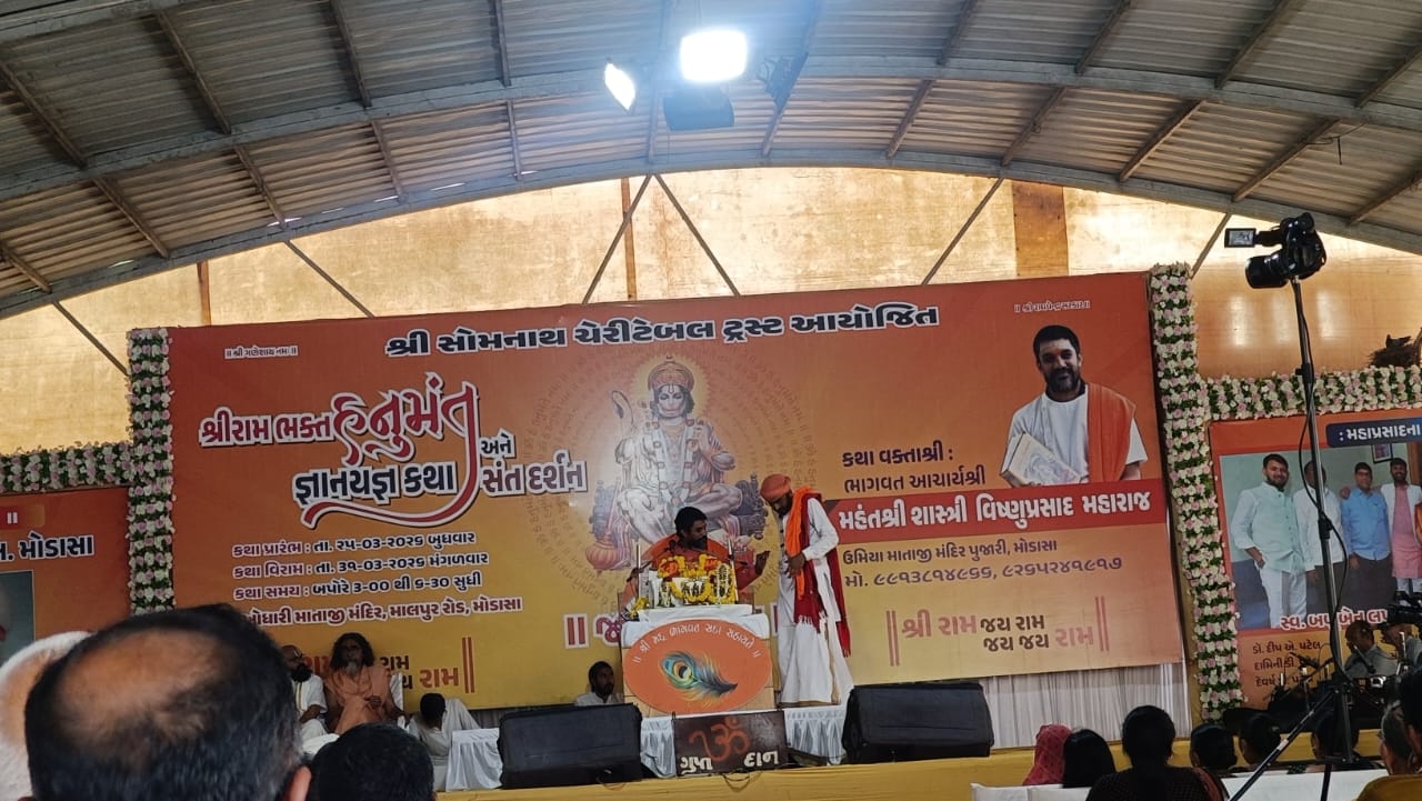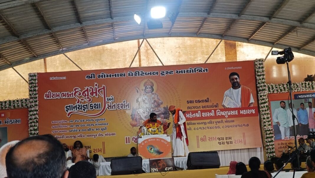 શ્રી સોમનાથ ચેરીટેબલ ટ્રસ્ટ દ્વારા મોડાસામાં આવેલા ઓધારી માતાજીના સ્થાનમાં રામ ભક્ત હનુમંત કથાની પૂર્ણાહુતિ કરવામાં આવી હતી