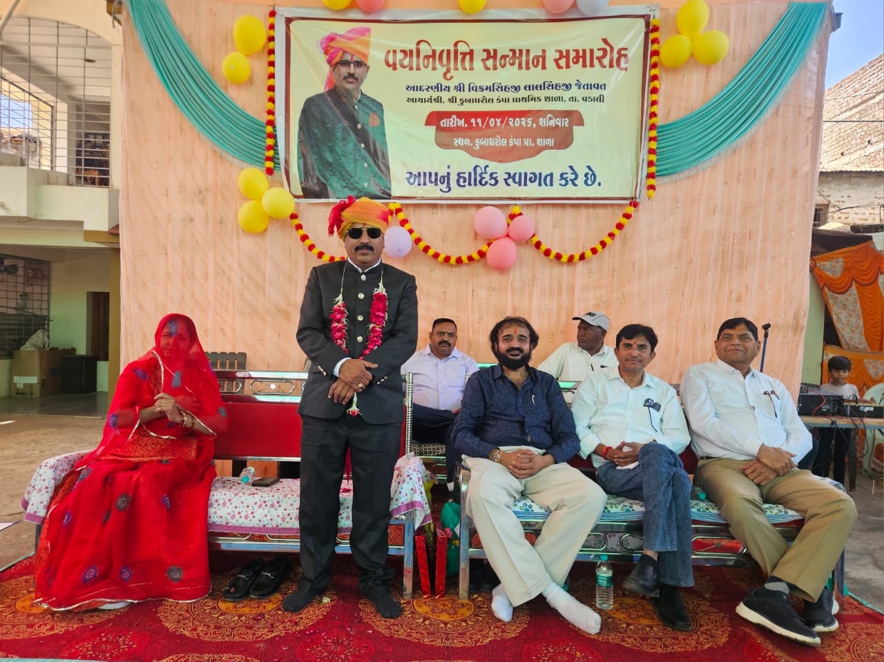 ભીખેન્દ્રસિંહજી ચૌહાણ, પ્રફુલ્લા કુવરબા ઉપસ્થિત રહ્યા હતા. નિવૃત આચાર્યશ્રીને ડીજેના તાલ સાથે વાજતે ગાજતે ખુલ્લી ગાડીમાં શોભાયાત્રા કાઢી અને સ્ટેજ ઉપર સ્થાન ગ્રહણ કરાવવામાં આવેલ. મંગલમય પ્રાર્થના, દીપ પ્રાગટ્ય, સૌ મહેમાનોનું અભિવાદન ત્યારબાદ વિદાય સત્કાર મેળવનાર શ્રી વિક્રમસિંહ જેતાવતનું ગ્રામજનો દ્વારા શ્રીફળ અને તલવાર અર્પણ, એસએમસી કમિટી, જુદી જુદી સંસ્થાઓ તથા બહોળી સંખ્યામાં શિક્ષણ પ્રેમીઓ દ્વારા શ્રીફળ સાલ અને મોમેન્ટો દ્વારા સન્માન કરવામાં આવેલ. ગ્રામજનો વતીથી સવિતાબેને પ્રતિભાવ આપ્યા હતા સન્માનના પ્રત્યુતરમાં આચાર્ય વિક્રમસિંહજીએ ગ્રામજનોના સુંદર સાથ સહકારની પ્રશંસા કરી હતી. સ્વાગત અભિવાદન મુકુંદભાઈ સુથારે કરેલ.