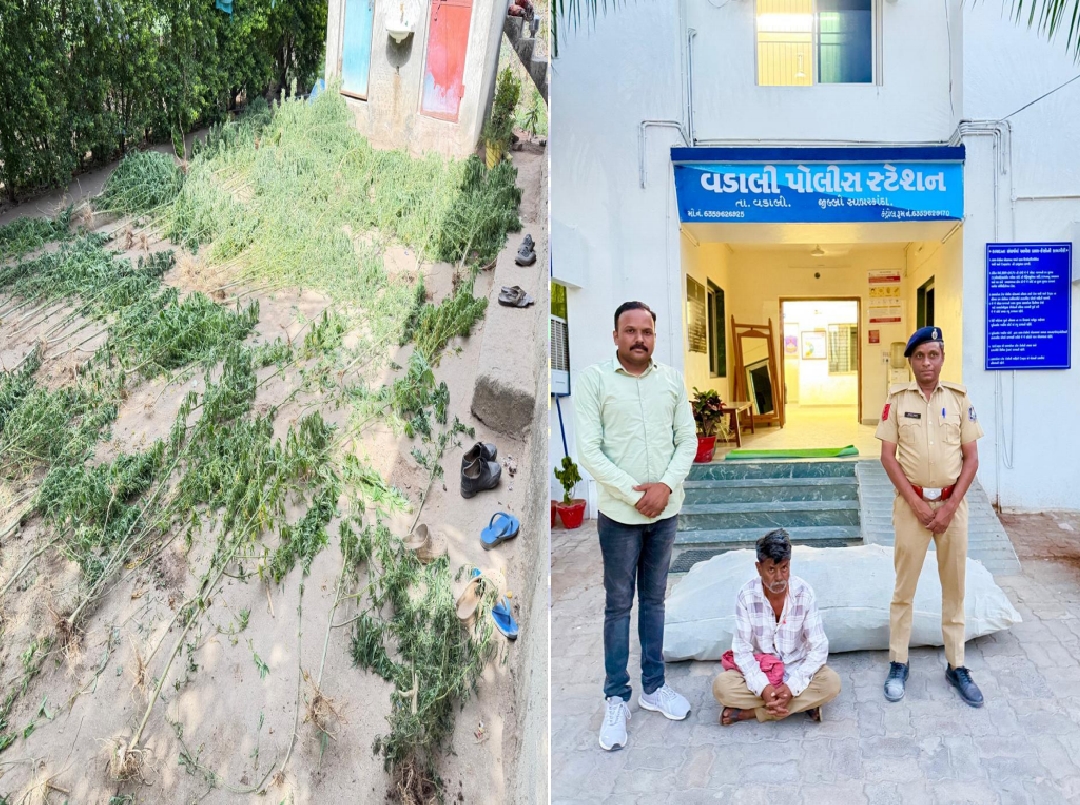 કેશરપુરા ગામની સિમમાં રહેતા મનજીભાઈ રામજીભાઈ કુંડનાઓ પોતાના ખેતરમાં વનસ્પતિજન્ય ગાંજાના લીલા છોડનું વાવેતર કરેલ છે.જે વિગેરે બાતમી હકીકતે સર્વેલન્સ સ્ટાફના માણસોને આ દિશામાં સતત તપાસમાં રહેલ તે દરમ્યાન અ.હે.કોન્સ હિરણસિંહ જગતસિંહ નોકરી વડાલી પોલીસ સ્ટેશનનાઓને બાતમી જે હકિકત આધારે પંચો સાથે રાખી પોલીસ સ્ટાફના માણસો સાથે રાખી બાતમી હકિકતવાળી જગ્યાએ જતા આરોપી મનજીભાઈ રામજીભાઈ ડુંડ ઉ.વ.૪૭ રહે.કેશરપુરા તા.વડાલી જી.સા.કા.નાઓ પોતાના ઘર આગળ બેસેલ હોઈ તેને સાથે રાખી તેના ખેતરમાં જઈ તપાસ કરતા ગેરકાયદેસર અને વગર પાસ પરમીટે વનસ્પતીજન્ય ગાંજાના કુલ -૬૮ છોડ નુ વાવેતર કરેલ હતુ. જે ગાંજાના છોડ વજન કુલ ૪૦.૨૦૦ કિલો ગ્રામ હતુ જેની કુલ કિંમત રૂપીયા -૨૦,૧૦,૦૦૦/-તથા આરોપીનો એક એન્ડ્રોઈડ મોબાઈલની કિમત રૂપીયા-૩૦૦૦/-મળી કુલ કિમત રૂપીયા -૨૦,૧૩,૦૦૦/-ના મુદામાલ સાથે આરોપીને પકડી પાડી વડાલી પોલીસ દ્વારા એન.ડી.પી.એસ એકટ હેઠળ ગુનો દાખલ કરી કાયદેસરની કાર્યવાહી કરવામાં આવેલ છે.