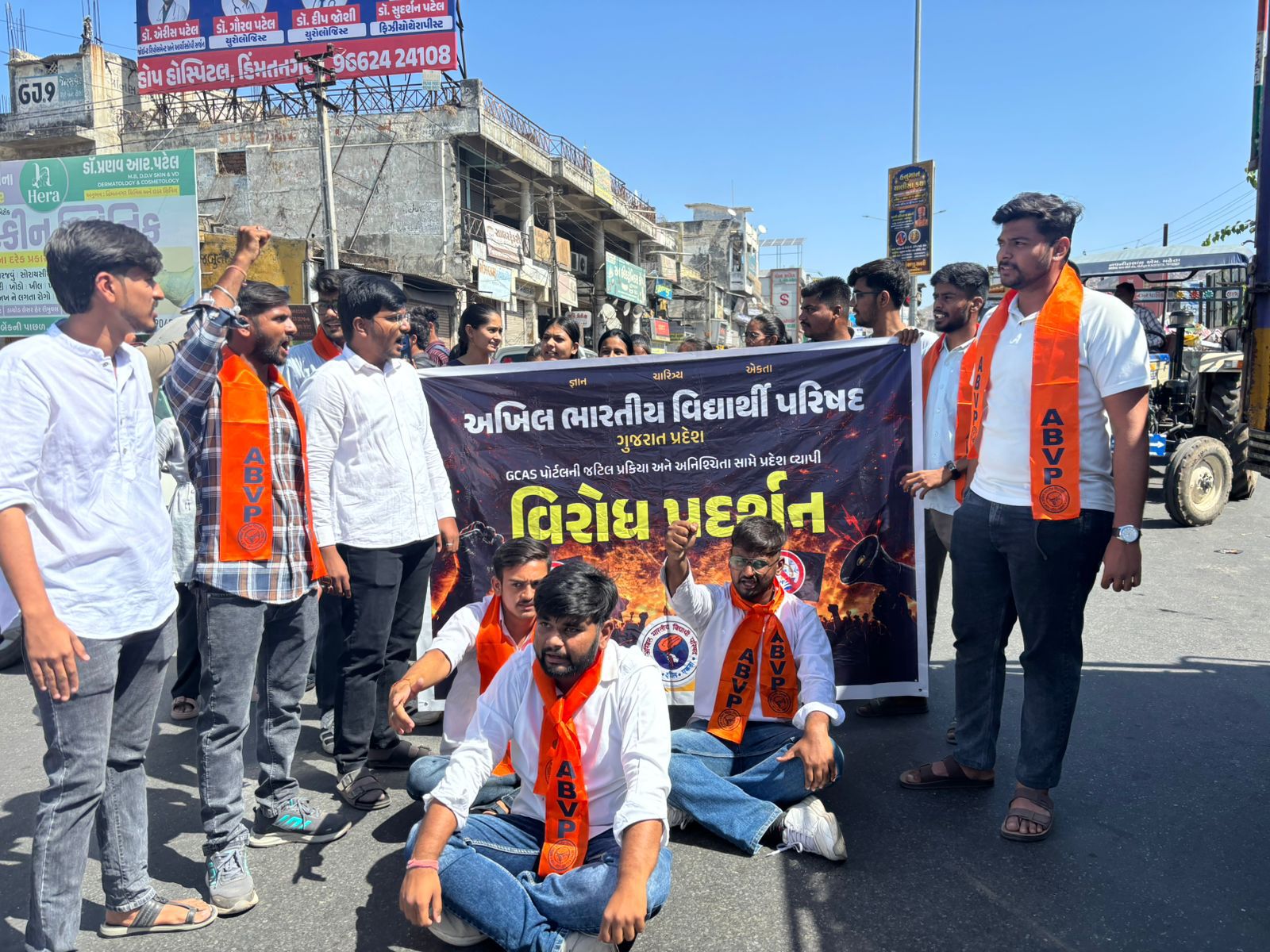 અખિલ ભારતીય વિદ્યાર્થી પરિષદ્ સાબરકાંઠા જિલ્લાના જીલ્લા ઇડર ચાર રસ્તા પર GCAS પોર્ટલ ની ખામીઓ ને સામે વિરોધ પ્રદર્શન કરવા માં આવ્યું.